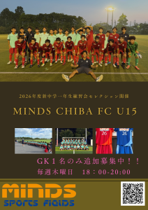 2026年度マインズ千葉FCジュニアユース新中学1年生GK追加募集中!!